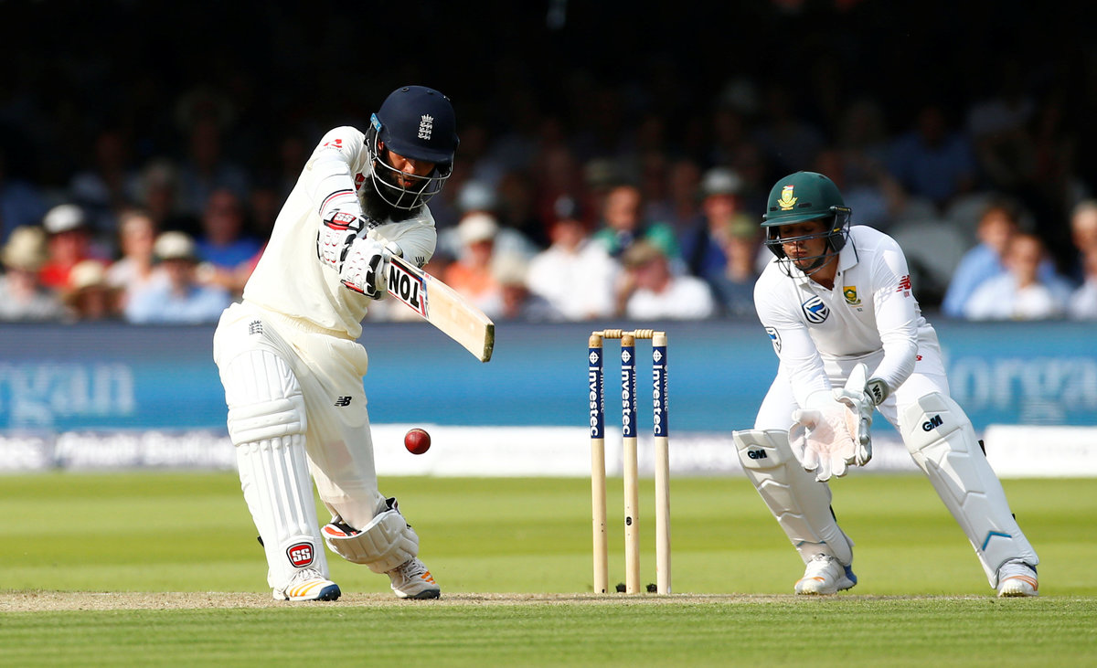 He struck 26 fours and one six, sharing an unbroken partnership of 167 with Moeen Ali, who finished on 61 not out, as runs flowed in the evening sunshine with England on top at the start of the four-test series.
