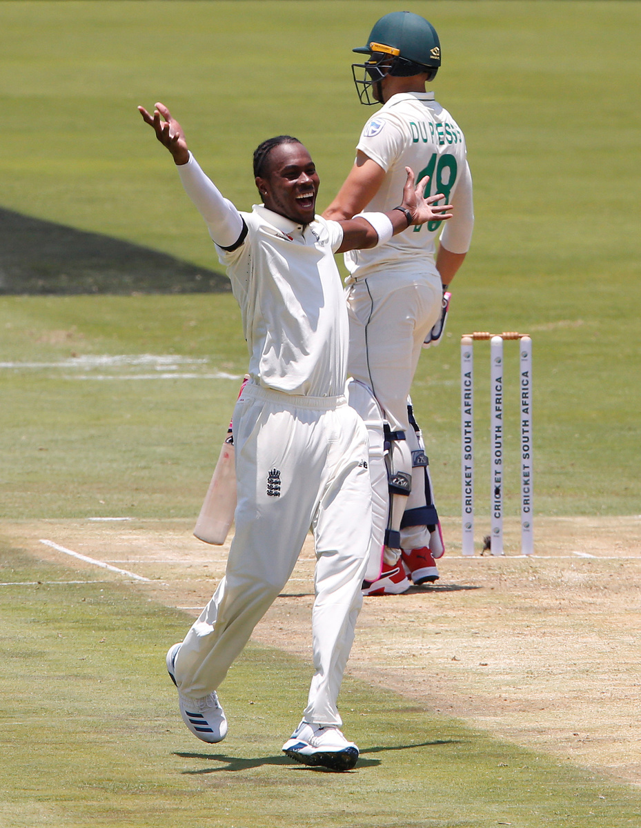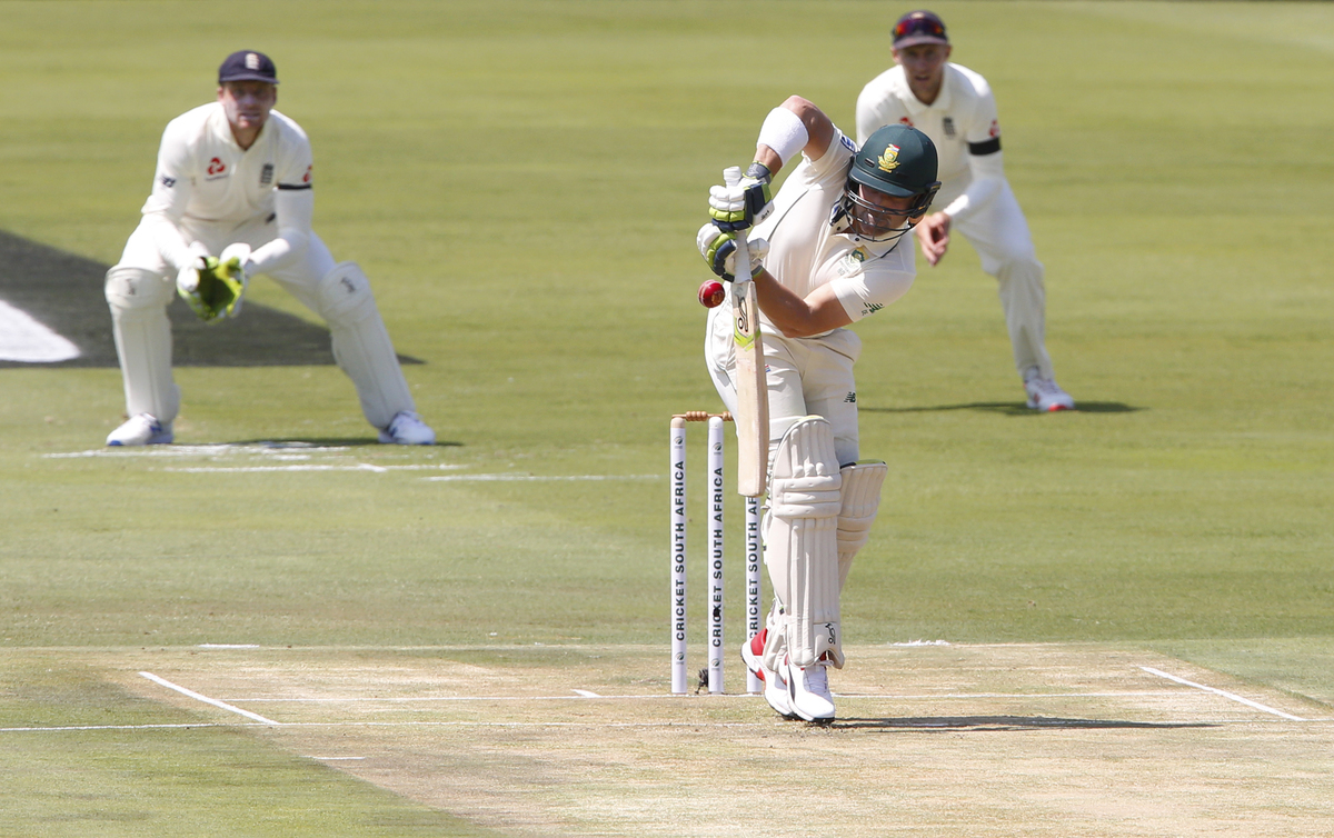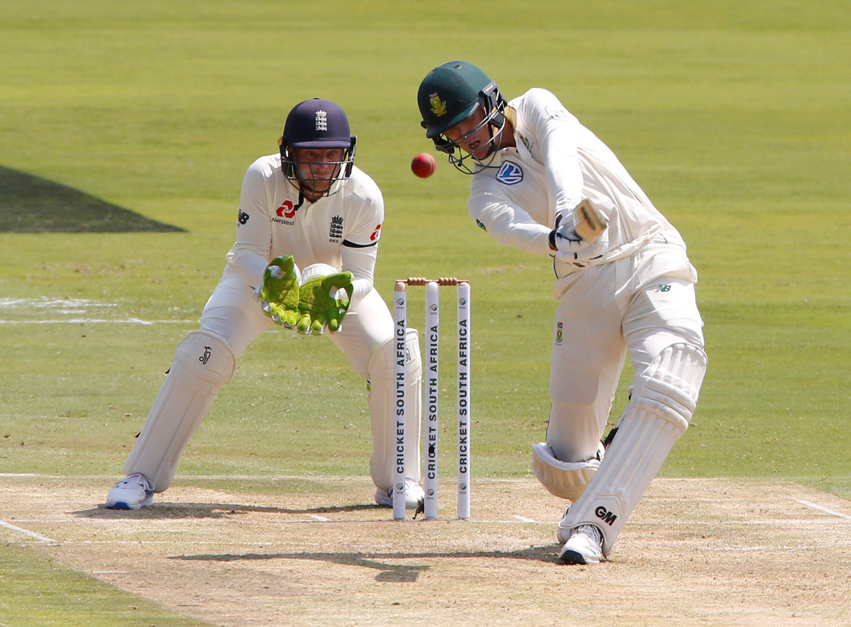 England took a wicket with the opening delivery of the four-test series and had their hosts teetering on 111-5 after lunch but De Kock’s belligerent innings brought South Africa back into the match.