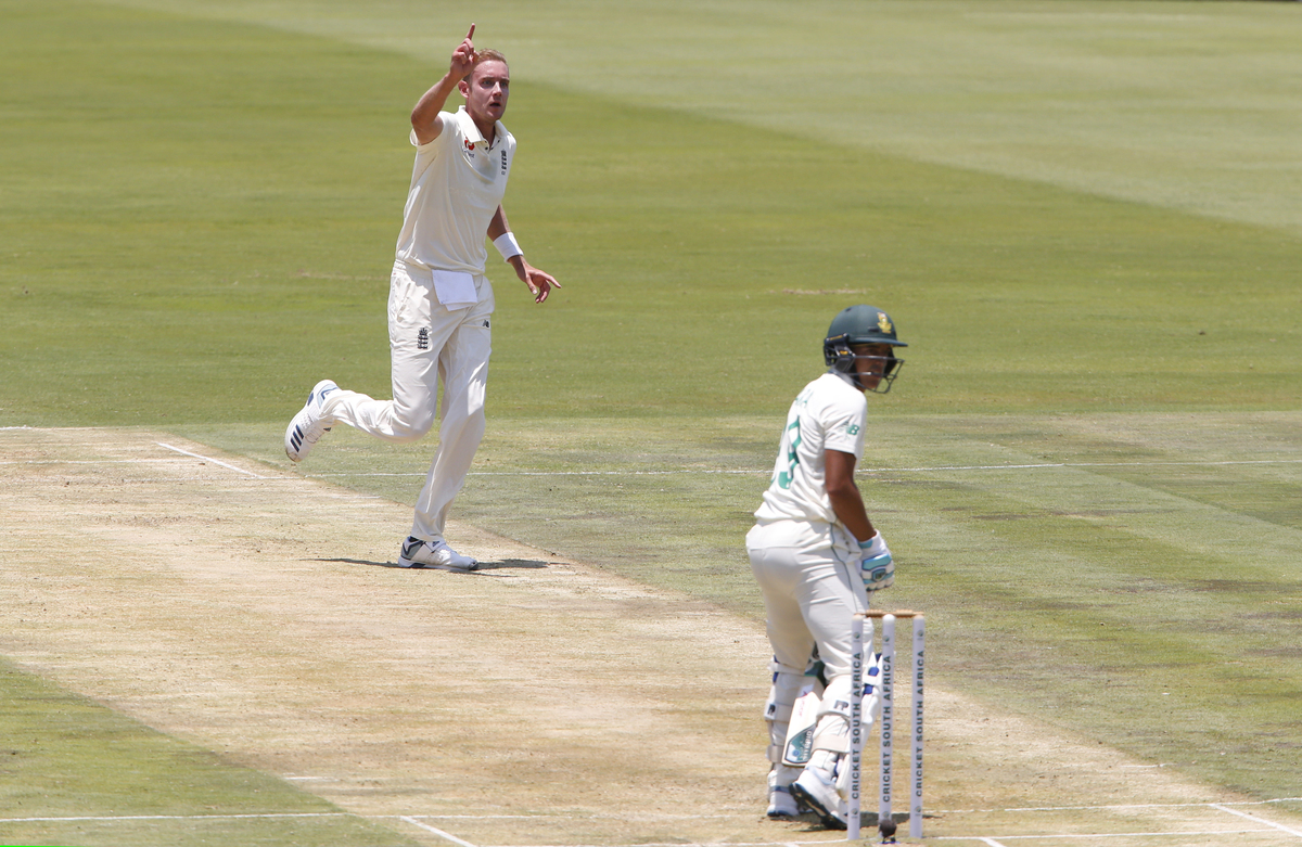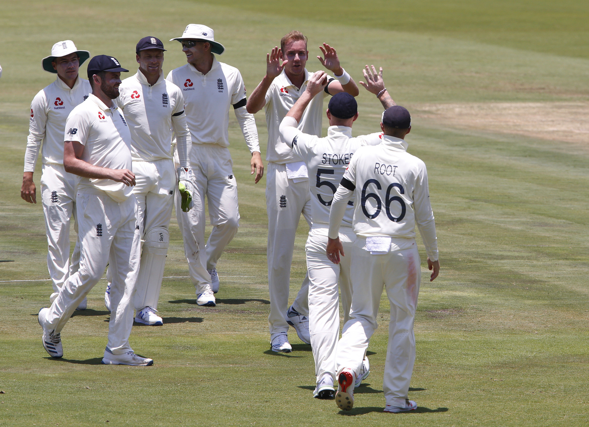 Cricket - South Africa v England - First Test - SuperSport Park Cricket Stadium, Centurion, Pretoria, South Africa - December 26, 2019 England's Stuart Broad celebrates taking the wicket of South Africa's Zubayr Hamza with Ben Stokes, Joe Root and teammates REUTERS/Rogan WardCricket - South Africa v England - First Test - SuperSport Park Cricket Stadium, Centurion, Pretoria, South Africa - December 26, 2019 England's James Anderson celebrates taking the wicket of South Africa's Dean Elgar, caught by England's Jos Buttler with teammates REUTERS/Rogan WardCricket - South Africa v England - First Test - SuperSport Park Cricket Stadium, Centurion, Pretoria, South Africa - December 26, 2019 England's Stuart Broad celebrates taking the wicket of South Africa's Zubayr Hamza REUTERS/Rogan WardCricket - South Africa v England - First Test - SuperSport Park Cricket Stadium, Centurion, Pretoria, South Africa - December 26, 2019 South Africa's Zubayr Hamza in action REUTERS/Rogan WardCricket - South Africa v England - First Test - SuperSport Park Cricket Stadium, Centurion, Pretoria, South Africa - December 26, 2019 South Africa's Zubayr Hamza bats past England's Jofra Archer REUTERS/Rogan WardCricket - South Africa v England - First Test - SuperSport Park Cricket Stadium, Centurion, Pretoria, South Africa - December 26, 2019 England's James Anderson celebrates taking the wicket of South Africa's Dean Elgar, caught by England's Jos Buttler with Ben Stokes and teammates REUTERS/Rogan WardCricket - South Africa v England - First Test - SuperSport Park Cricket Stadium, Centurion, Pretoria, South Africa - December 26, 2019 South Africa's Dean Elgar is bowled by England's James Anderson REUTERS/Rogan WardCricket - South Africa v England - First Test - SuperSport Park, Centurion, South Africa - December 26, 2019 England's Sam Curran celebrates taking the wicket of South Africa's Rassie van der Dussen with Joe Root and Jos Buttler REUTERS/Rogan WardCricket - South Africa v England - First Test - SuperSport Park, Centurion, South Africa - December 26, 2019 England's Jofra Archer appeals unsuccessfully for the wicket of South Africa's Faf du Plessis REUTERS/Rogan WardCricket - South Africa v England - First Test - SuperSport Park, Centurion, South Africa - December 26, 2019 England's Sam Curran celebrates taking the wicket of South Africa's Rassie van der Dussen REUTERS/Rogan Ward