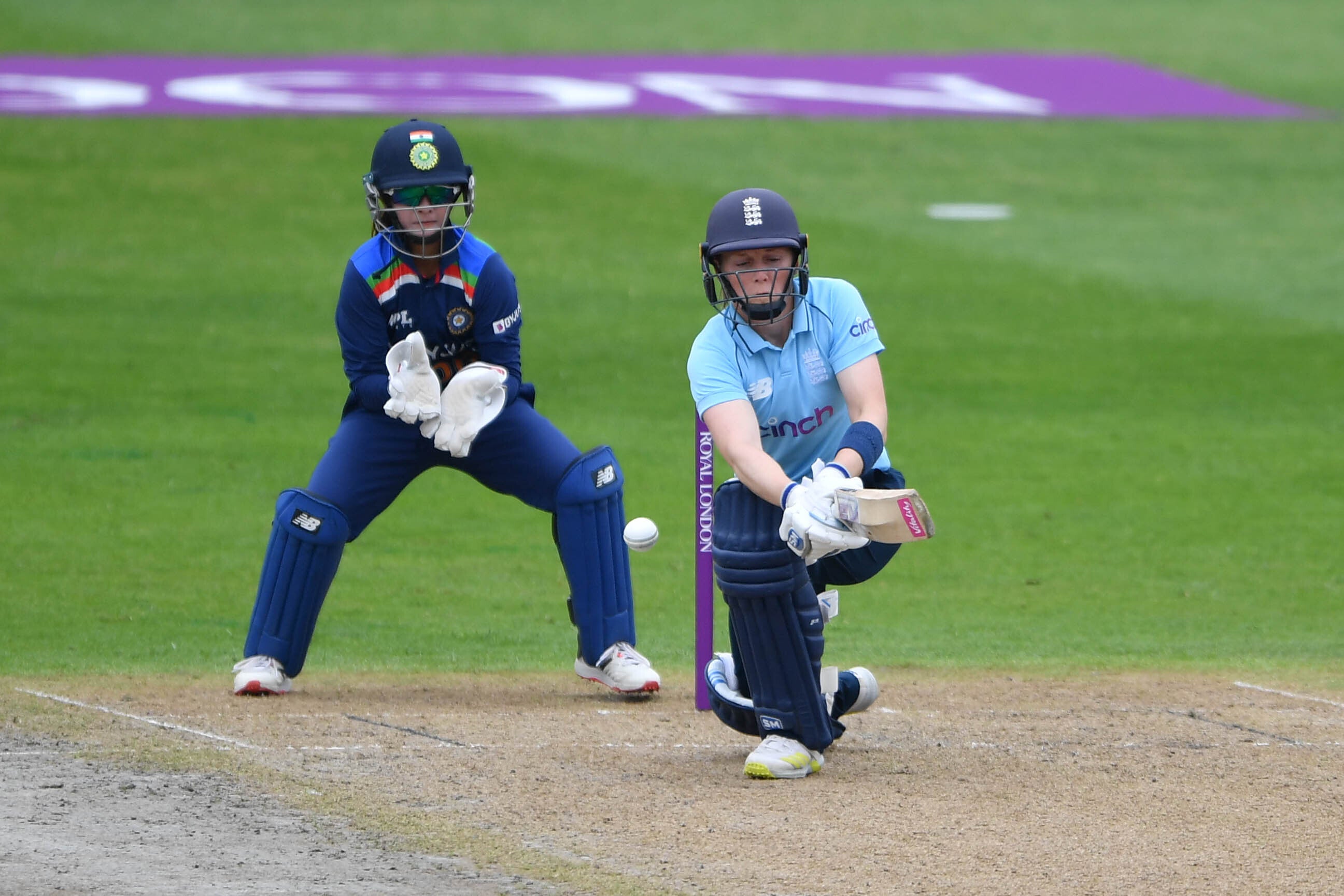 The tourists’ cause was not helped when Harmanpreet Kaur was given lbw off Knight, having made 16 off 38 balls, to leave India on 131 for four.