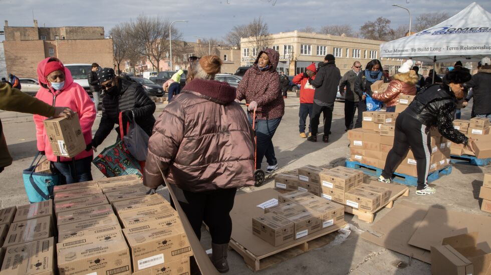Janelle Teague traveled to the food giveaway from Matteson because she struggles to put food on the table.