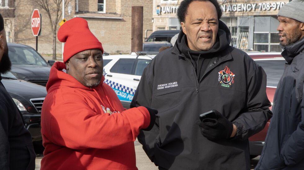 People and cars lined up down the block to receive some of the 60,000 pounds of frozen beef, hot dogs and bacon passed out at 63rd Street and Ashland Avenue. The giveaway was held by the Andrew Holmes Foundation and Taste for the Homeless run by Michael Airhart.