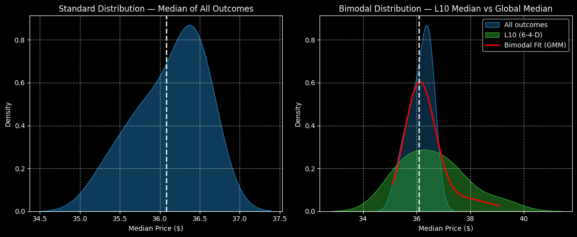 However, the exceedance ratio (profitability rate) over the next 10 weeks would be expected to improve to 57.1% (compared to 50.6% for baseline). Even better, certain weeks, particularly the third forward week, may see an unusual lift in the terminal median price.