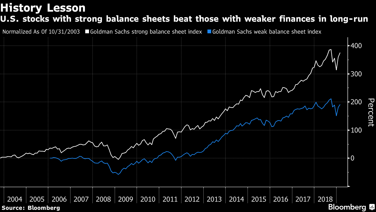 “Investors place higher scrutiny on leverage as we approach the end of the cycle and companies with stronger balance sheets are often preferred even if they are more expensive,” said Vincent Juvyns, a global market strategist at JPMorgan Asset Management.