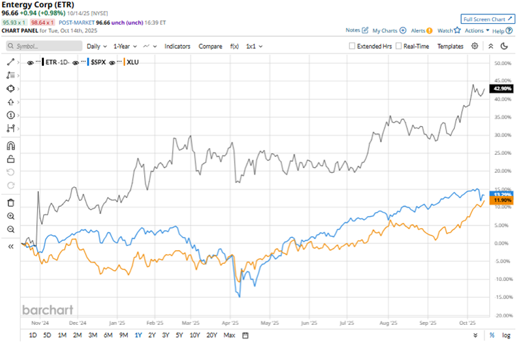 Entergy’s stock has held up well over the past year. Over the past 52 weeks, the stock has gained 46.6%, while it is up 27.5% year-to-date (YTD). Comparing this to the broader S&P 500 Index ($SPX), which has gained 13.4% and 13% over the same periods, respectively. Therefore, we see a clear outperformance.