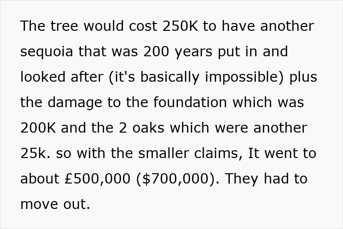 And then there’s “environmental value”, which is inextricably connected to property desirability. Big, established trees clean the air, filter out noises, and give natural stormwater drainage by absorbing thousands of gallons of rainwater annually. In flood-prone regions, this natural water-absorbing function can prevent expensive water damage, a situation that shrewd buyers (and insurers) don’t treat lightly. One large tree also stores hundreds of pounds of carbon, a physical representation of green living, increasingly attractive in the modern housing market, although, as we see here, also an eyesore for an entitled neighbor.
