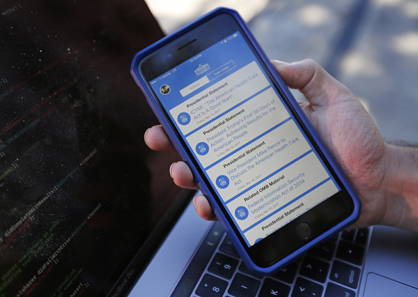 One such Trump-inspired app is Presidential Actions. The app, which UC Berkeley sophomore Ash Bhat and his roommate Rohan Pai put together in less than a day, alerts users every time the president signs an executive order or takes another action, providing press releases and documents from the White House's website. It also displays a map of nearby town hall meetings held by lawmakers.