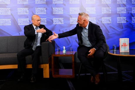 Wang Xining, the Chinese Embassy in Australia’s deputy head of mission, and Michael Smith one the last journalists working for Australian media to flee China, were taking part in a panel discussion about China at the National Press Club of Australia.