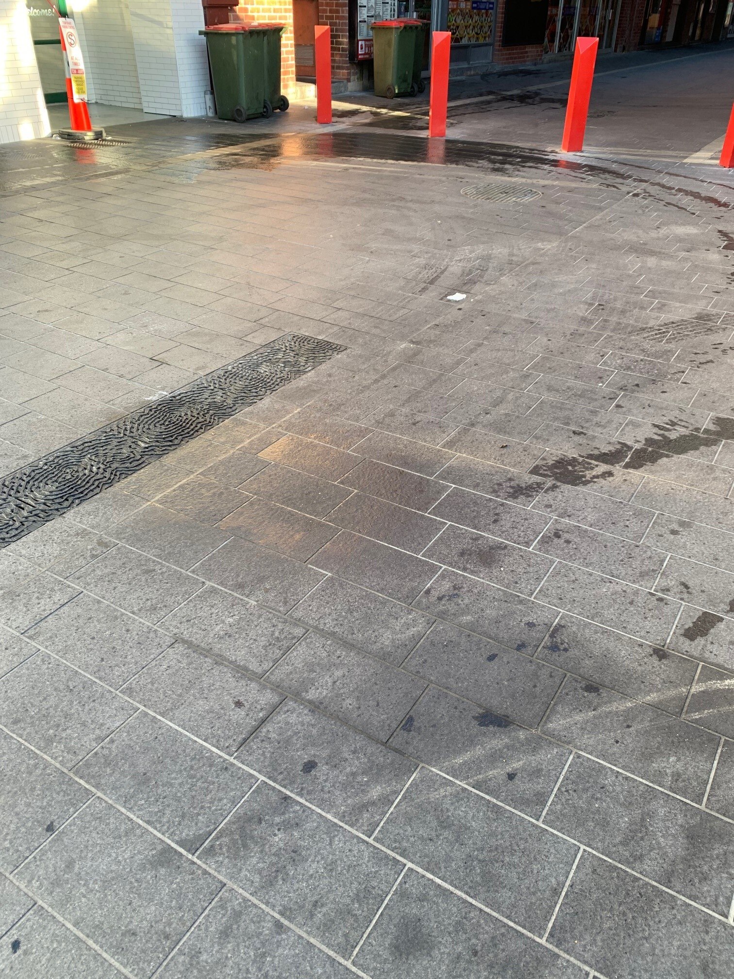 New pavers that are part of a $4 million redevelopment of Moonta Street have been stained by cooking oil, making them slippery and discoloured.