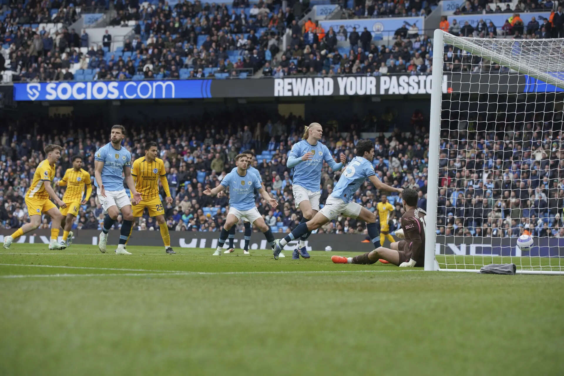 Despite goals from Erling Haaland and Omar Marmoush, Brighton maintained their seven-match unbeaten sequence through Pervis Estupinan's free-kick and an Abdukodir Khusanov own goal.
