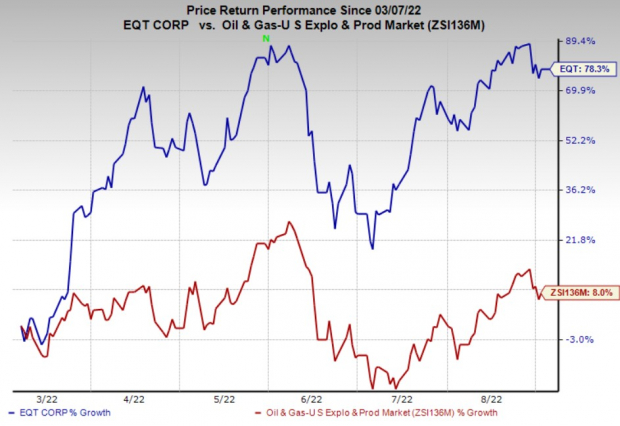 Shares of EQT have outperformed the industry in the past six months. The stock has gained 78.3% compared with the industry's 8% growth.