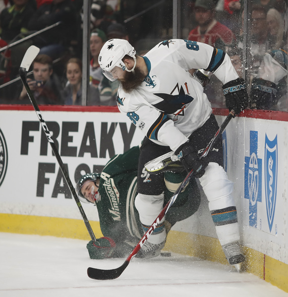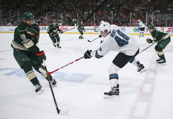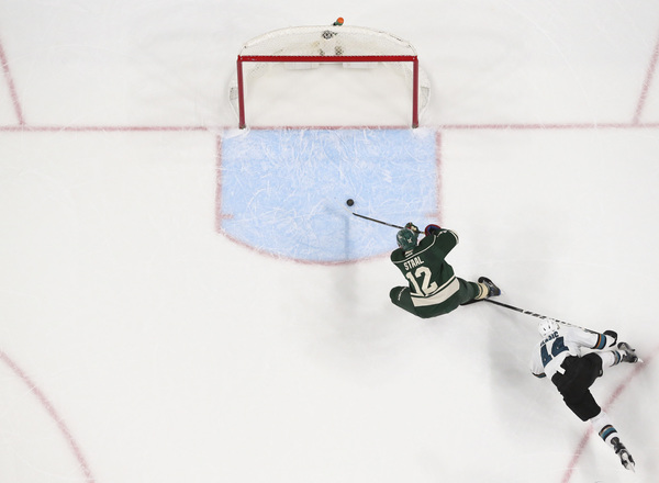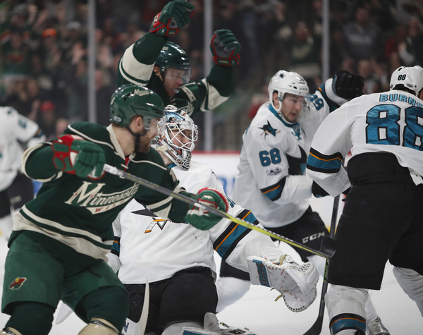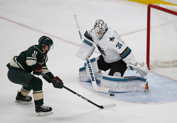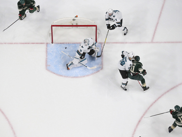 Martin Jones' denied Scandella slap shot, which proved big because with 1:34 left, Justin Braun slid down the wall and was the tic in a beautiful tic-tac-toe goal by the fourth line. Mikko Koivu gave Melker Karlsson too much room, and he buried Micheal Haley's feed.