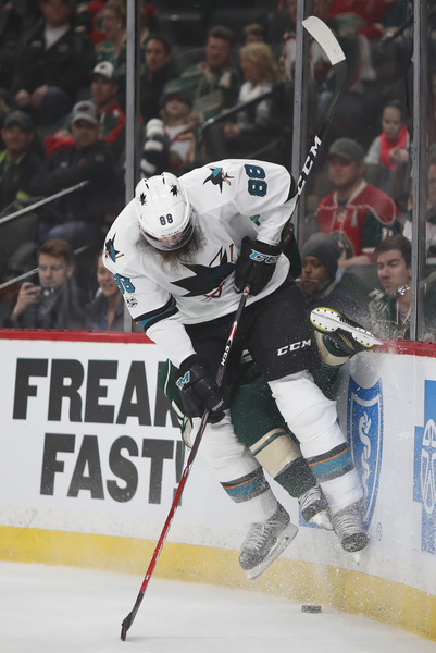Defenseman Christian Folin looked to serious injure his right arm, maybe his wrist, midway through the first period when he lost his footing chasing a Joe Pavelski dump-in and crashed violently into the end wall after a nudge by Kevin Labanc.
