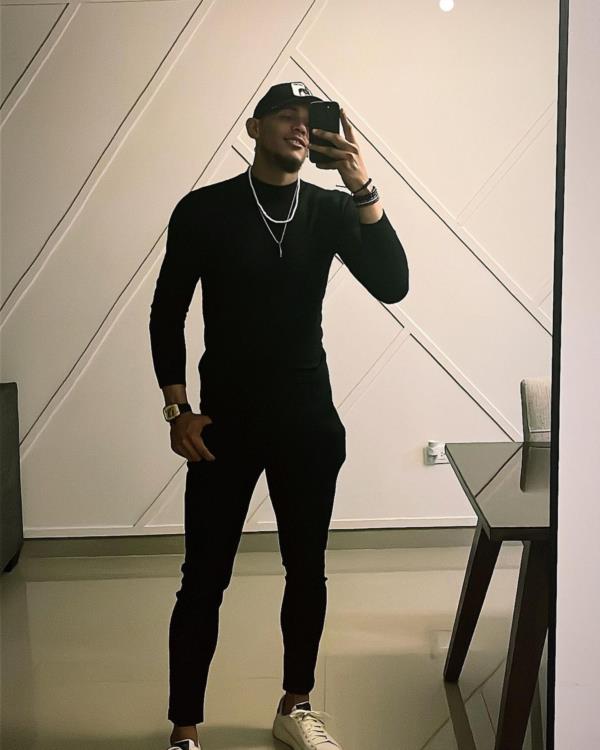 With a charming smile, Erik strikes a pose wearing a coordinated black top, trousers, and cap. The monochromatic look is elevated by the addition of white shoes, which provide a striking contrast and add a touch of sophistication to his outfit.
