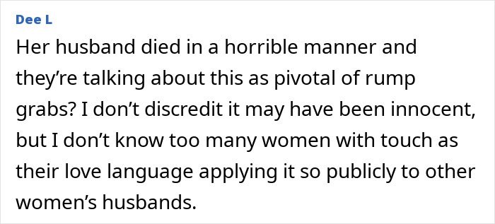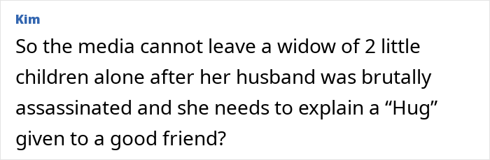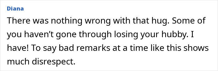 “There was nothing wrong with that hug. Some of you haven’t gone through losing your hubby. I have! To say bad remarks at a time like this shows much disrespect,” another added.
