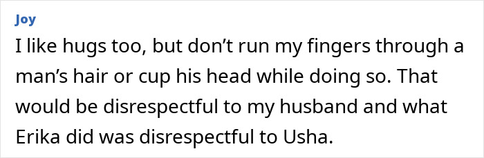 “Her embrace seemed inappropriate given that he is married. It’s important to maintain respectful distance,” a reader wrote.