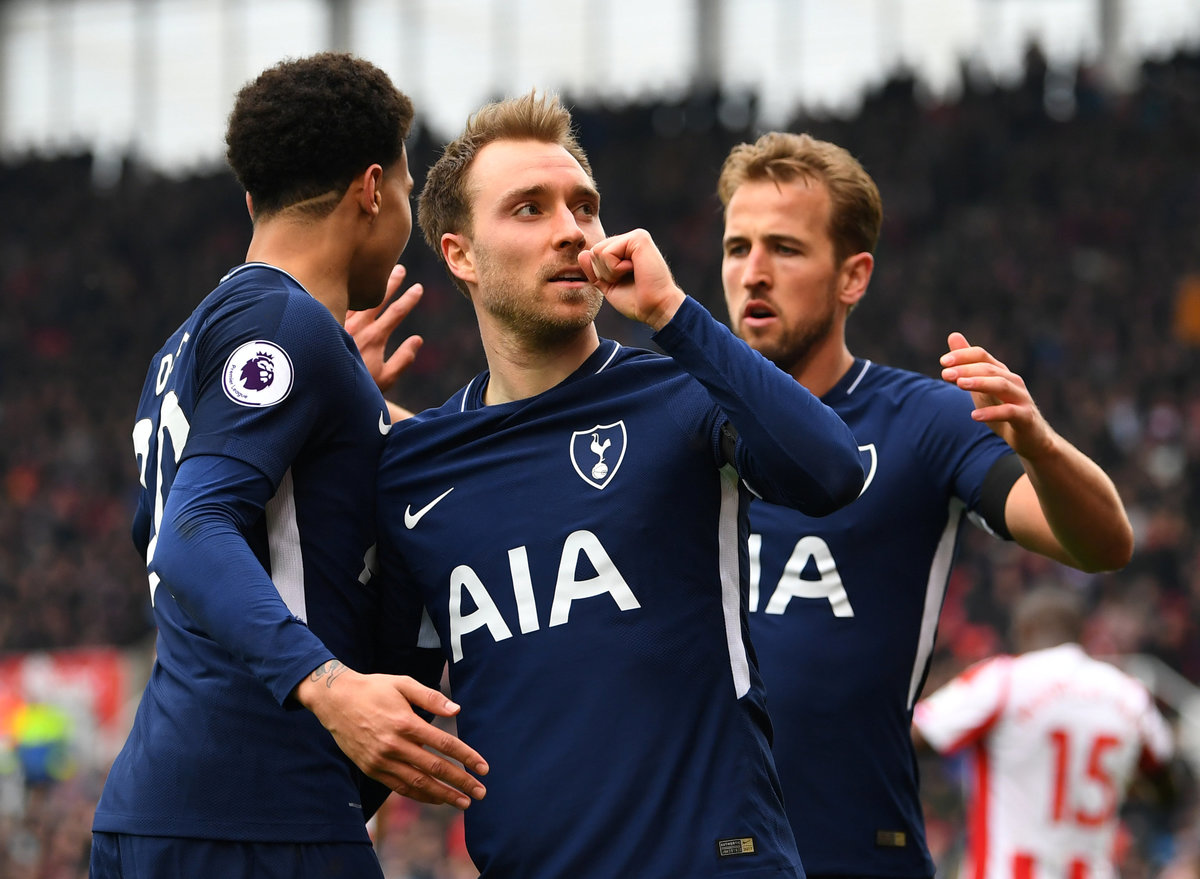 (Reuters) - Christian Eriksen maintained his hot goalscoring streak, striking both goals in Tottenham Hotspur's 2-1 win at struggling Stoke City to extend Spurs' winning sequence on Saturday.