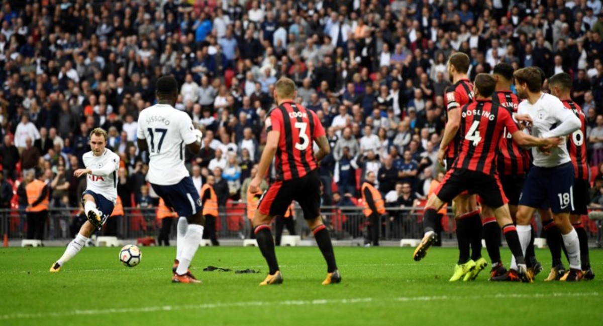 Tottenham changed from a back four to a three after the interval and needed only two minutes to break the deadlock when Eriksen's goalward dribble was stopped but the ball fell conveniently for the Dane to side-foot calmly past Bournemouth keeper Asmir Begovic.
