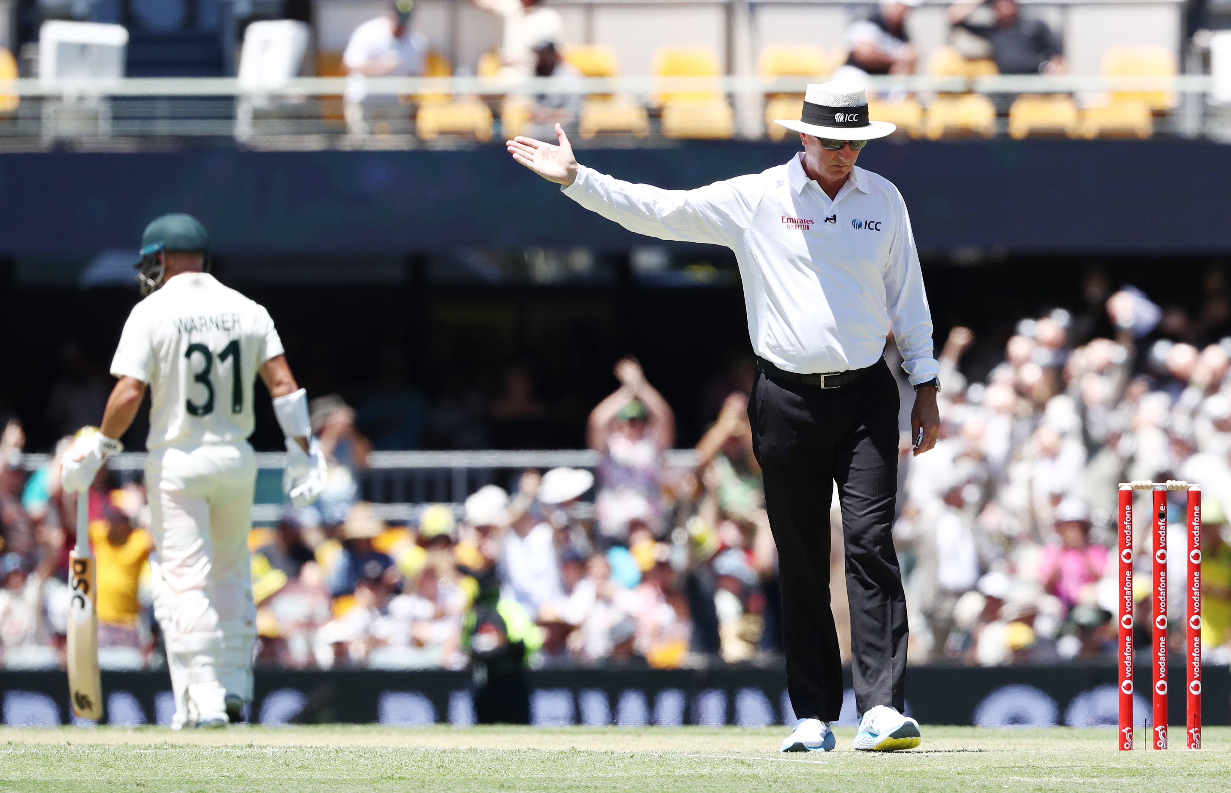 When Ben Stokes forced one through Warner’s defences in his first over of the match, England’s joy was short-lived due to a front foot overstep. It later became clear that the all-rounder was clearing the line on a regular basis without being pulled up. Modern matchday protocols dictate that no-balls should be monitored by the third umpire using dedicated cameras but it became clear that technology had malfunctioned and would not be available during the match. Former Australia captain Ricky Ponting bemoaned “pathetic officiating” on Channel 7’s commentary, suggesting Stokes should have been informed of the issue before paying a big price.