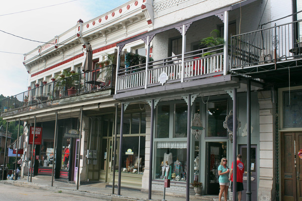 The grandest buildings in town are the historic hotels, each with a rich history and worth a visit. I stopped by three: 1905 Basin Park Hotel, next to the open-air amphitheater and city park; the Palace Hotel & Bath House Spa, a former bordello; and the landmark 1886 Crescent Hotel & Spa, with large verandas and a fourth-floor balcony overlooking the city and its own manicured gardens.