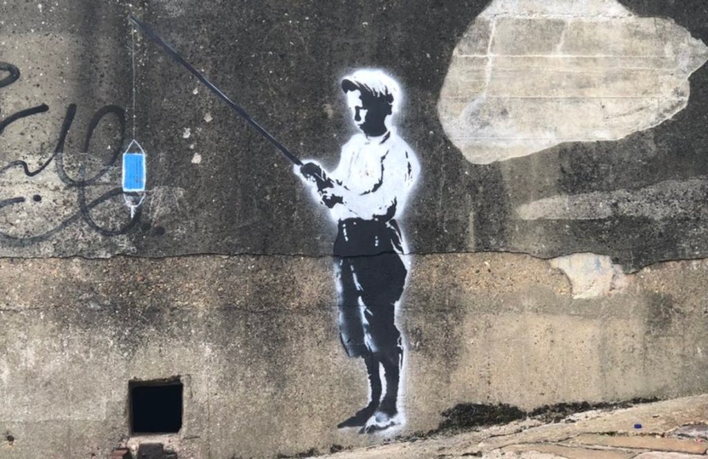 The street art, which features a boy holding a fishing rod with a blue face mask attached to it, was first spotted early on Wednesday (18 August) on the sea wall at Stone Pier in Harwich.