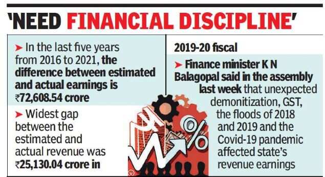 THIRUVANANTHAPURAM: Exposing the inaccuracies in anticipating and collecting revenue of the state, the figures in the last five years from 2016 to 2021 show that the difference between estimated earnings and actual earnings is a whopping Rs 72,608.54 crore.