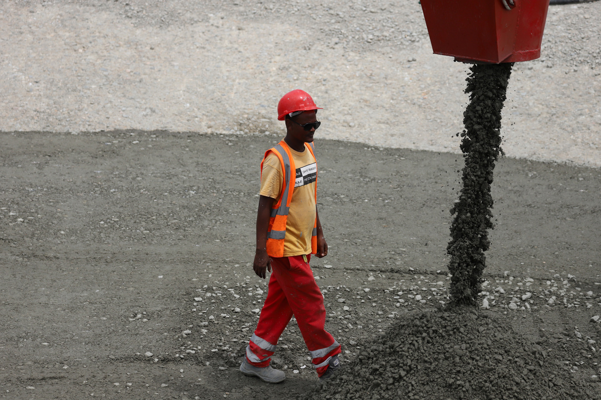 Construction workers are seen at Ethiopia's Grand Renaissance Dam on the river Nile in Guba Woreda, Benishangul Gumuz Region, Ethiopia September 26, 2019. REUTERS/Tiksa Negeri