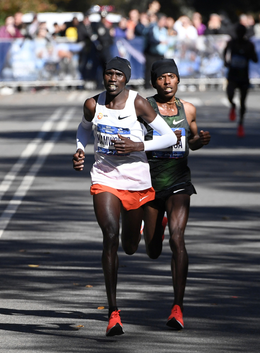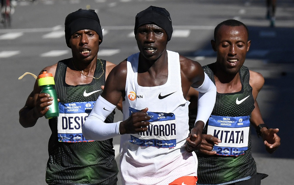 Kitata, 22, led much of the race before Kamworor moved in front of the Ethiopians around the 23rd mile.