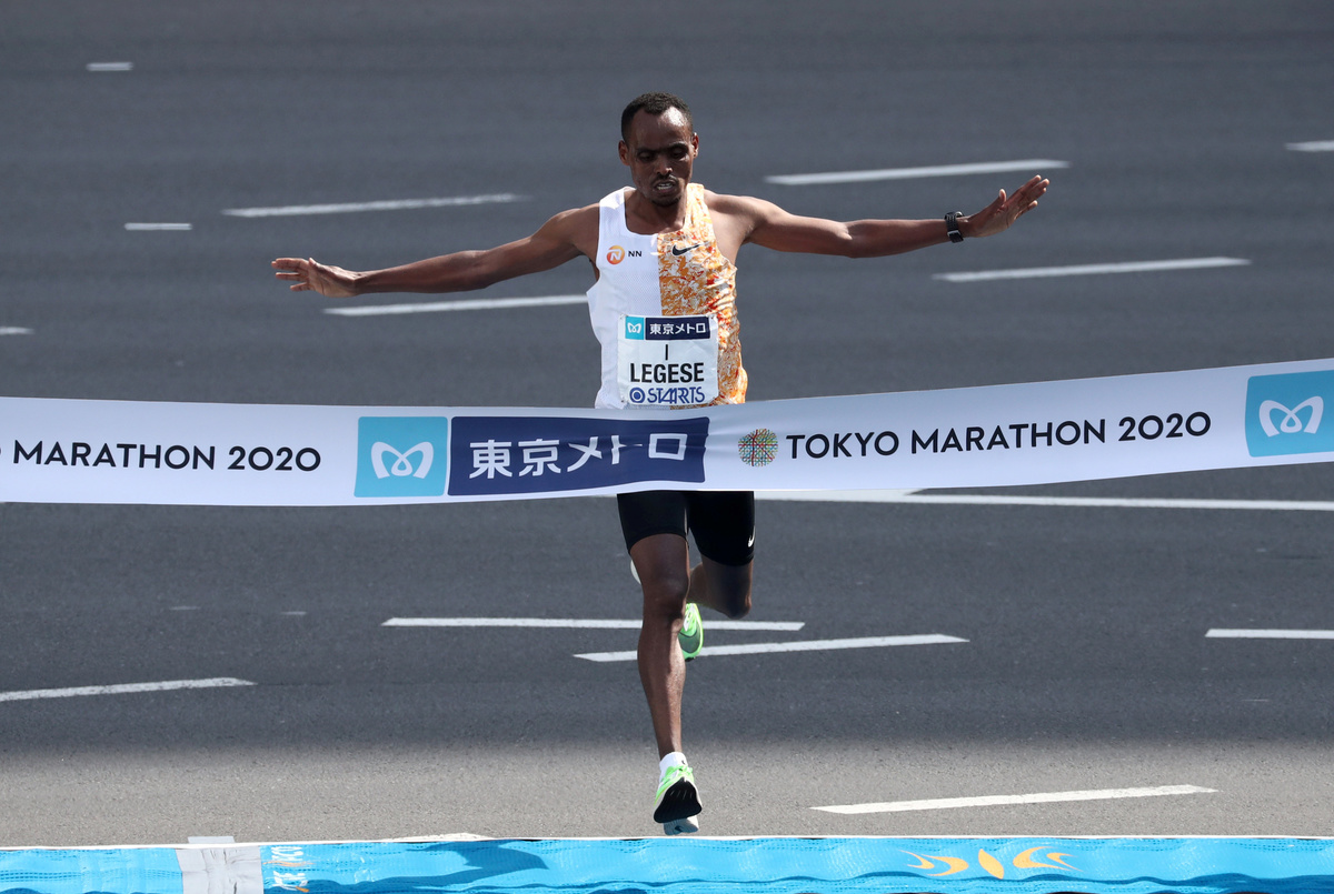 Ethiopian Birhanu Legese won the Tokyo Marathon for the second year in a row on Sunday, racing to victory in two hours, four minutes and 15 seconds along often empty streets in the Japanese capital.