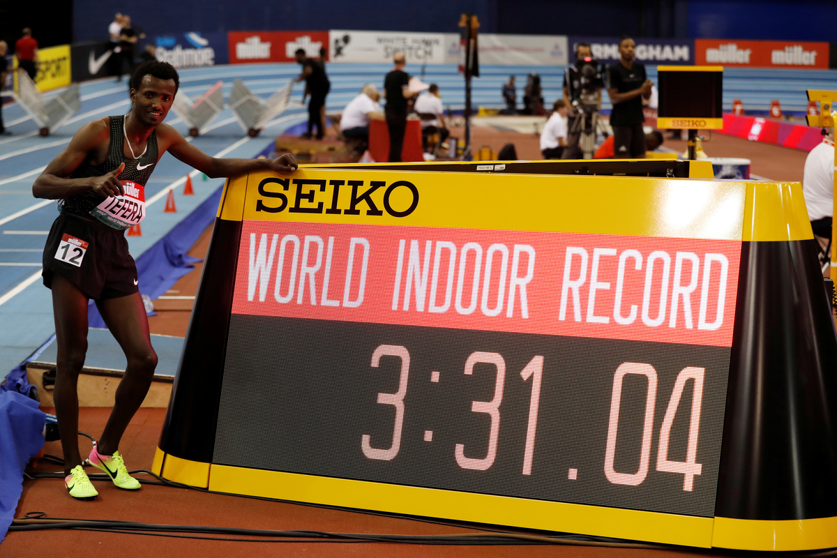 BIRMINGHAM, England (Reuters) - Ethiopian teenager Samuel Tefera outduelled compatriot Yomif Kejelcha to break the world indoor 1,500 metres record in Birmingham on Saturday.
