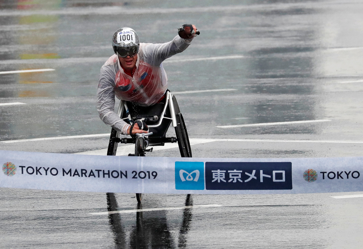 Athletics - Tokyo Marathon 2019 - Tokyo, Japan - 03/03/19 - Women's wheelchair division winner Manuela Schar of Switzerland shows her gold medal during an awarding ceremony. REUTERS/Issei KatoAthletics - Tokyo Marathon 2019 - Tokyo, Japan - 03/03/19 - Men's wheelchair division winner Marcel Hug of Switzerland shows his gold medal during an awarding ceremony. REUTERS/Issei KatoAthletics - Tokyo Marathon 2019 - Tokyo, Japan - 03/03/19 - Winner Birhanu Legese of Ethiopia crosses the finish line. REUTERS/Issei KatoAthletics - Tokyo Marathon 2019 - Tokyo, Japan - 03/03/19 - Winner Birhanu Legese of Ethiopia runs towards the finish line, with the Tokyo Station building in the background. REUTERS/Issei KatoAthletics - Tokyo Marathon 2019 - Tokyo, Japan - 03/03/19 - Women's winner Ruti Aga of Ethiopia crosses the finish line. REUTERS/Issei KatoAthletics - Tokyo Marathon 2019 - Tokyo, Japan - 03/03/19 - Women's winner Ruti Aga of Ethiopia runs towards the finish line, with the Tokyo Station building in the background. REUTERS/Issei KatoAthletics - Tokyo Marathon 2019 - Tokyo, Japan - 03/03/19 - Silver medalist Bedan Karoki of Kenya crosses the finish line. REUTERS/Issei KatoAthletics - Tokyo Marathon 2019 - Tokyo, Japan - 03/03/19 - Winner Birhanu Legese of Ethiopia crosses the finish line. REUTERS/Issei KatoDickson Chumba of Kenya crosses the finish line to win the Tokyo Marathon 2018 in Tokyo, Japan in this photo taken by Kyodo February 25, 2018. Mandatory credit Kyodo/via REUTERSAthletics - Tokyo Marathon 2019 - Tokyo, Japan - 03/03/19 - Runners at the start of the Tokyo Marathon 2019. REUTERS/Issei KatoAthletics - Tokyo Marathon 2019 - Tokyo, Japan - 03/03/19 - Men's wheelchair division winner Marcel Hug of Switzerland acorsses the finish line. REUTERS/Issei KatoAthletics - Tokyo Marathon 2019 - Tokyo, Japan - 03/03/19 - Women's wheelchair division winner Manuela Schar of Switzerland acorsses the finish line. REUTERS/Issei Kato