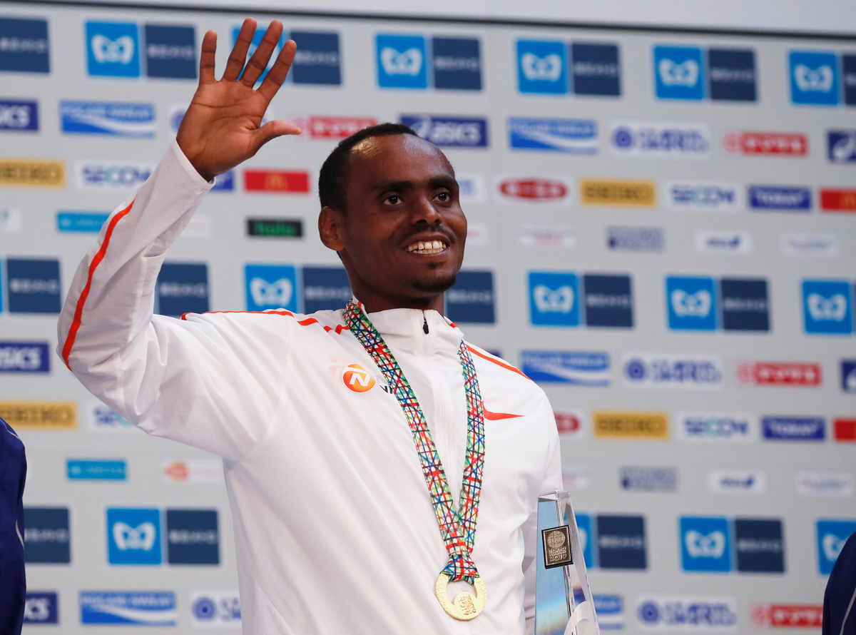 Athletics - Tokyo Marathon 2019 - Tokyo, Japan - 03/03/19 - Gold medalist Birhanu Legese of Ethiopia at the awarding ceremony. REUTERS/Issei Kato