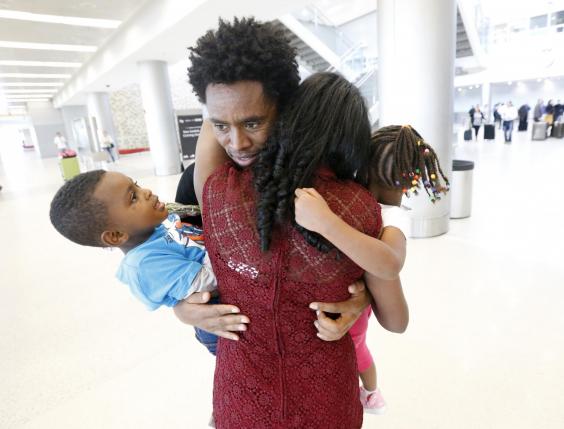 On Tuesday at Miami International, Mr Lilesa's daughter spotted him first and ran to hug him. She was followed closely by his young son and lastly his wife.