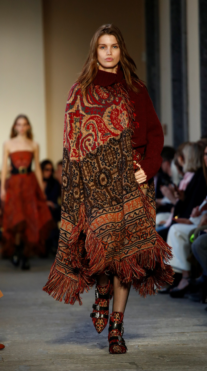 Womenswear creative director Veronica Etro showcased vibrant tapestry prints, nodded to equestrian influences and added regal touches for the "Aristo-Indie" collection.