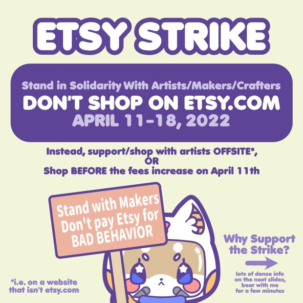 The hashtag trended on Twitter Monday morning, the day of the strike's kickoff, with many sellers announcing their Etsy shops were closed for the week and redirecting buyers to other ways to purchase their goods. Other sellers used their art skills to make eye-catching infographics to help more people understand the community's reasons for the strike.