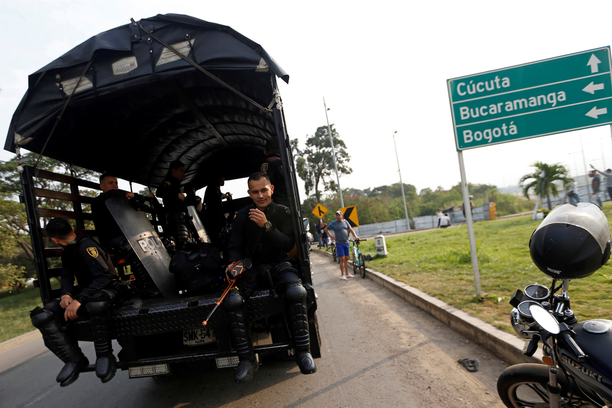 CUCUTA, Colombia/TIENDITAS, Venezuela (Reuters) - Trucks carrying humanitarian aid for crisis-stricken Venezuela arrived in the Colombian border city of Cucuta on Thursday as diplomatically-isolated President Nicolas Maduro appeared set to block its entry amid an escalating political crisis.