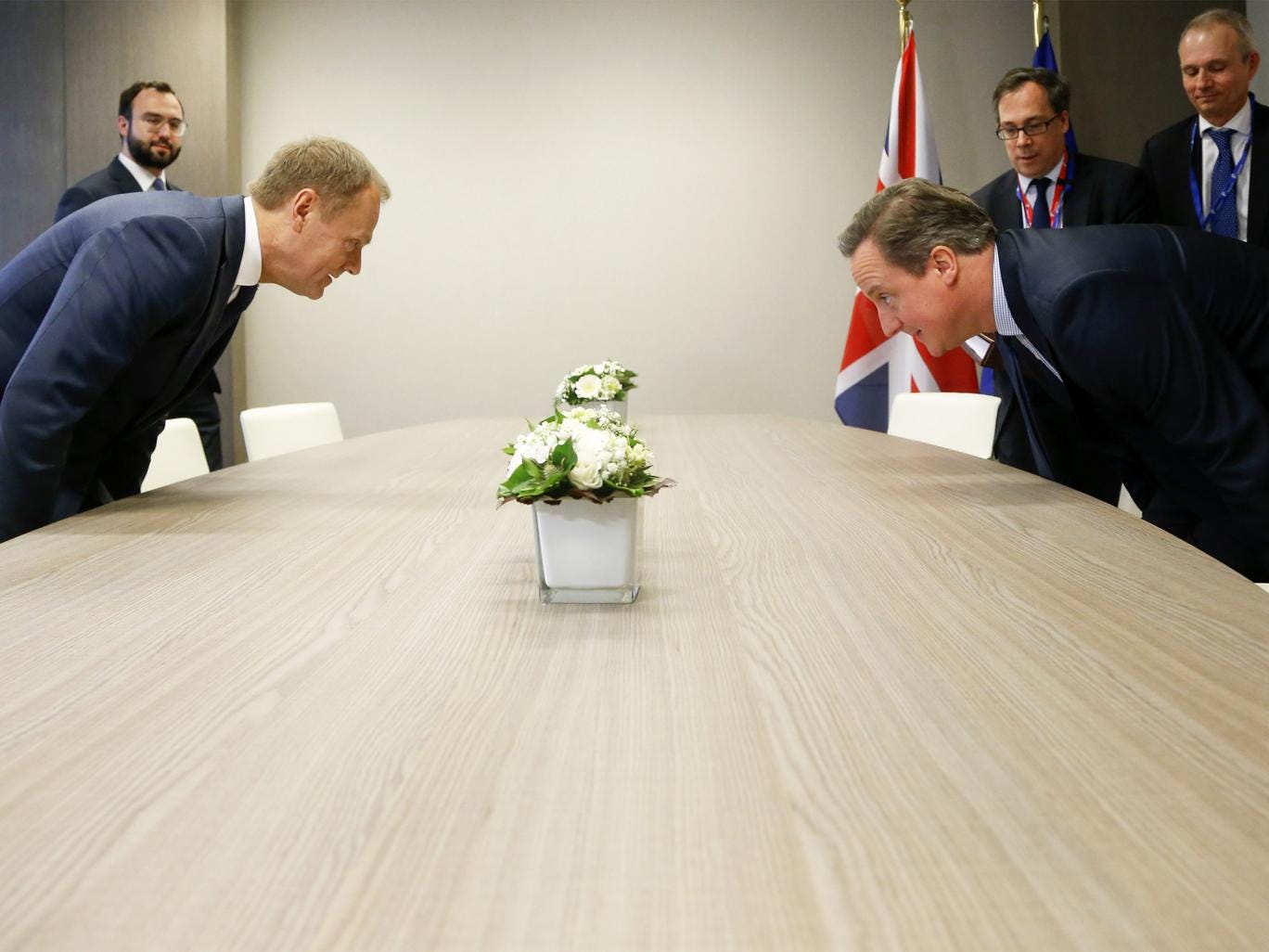 Although the summit began on Thursday evening with a tetchy tour de table – round-table – discussion, it was not until the end of dinner, at 2am, that the PM was able to start lobbying each delegation individually. He spent three hours in meetings before returning to the British ambassador’s residence for a rest before talks resumed in the morning.