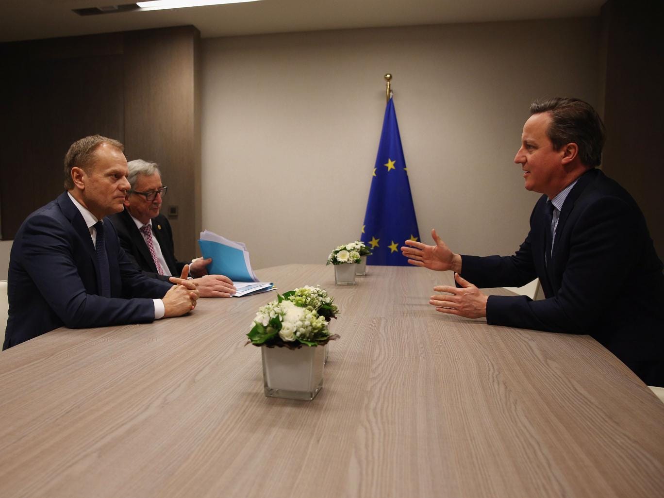 The Prime Minister held several “hard going” meetings with European Council president Donald Tusk and French president Francois Hollande before leaving at around 5.30am, Brussels time, (4.30am GMT).