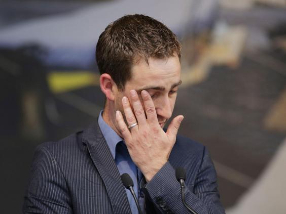 The plane's engines could be heard as Mr Cox fought against tears in an emotional tribute to his late wife.