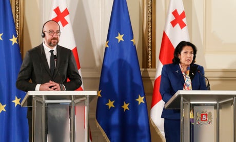 “My visit coincides with an aggravating political crisis in Georgia, which deeply worries the European Union, and I am also personally deeply worried by it,” European Council President Charles Michel said.