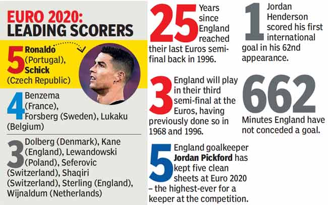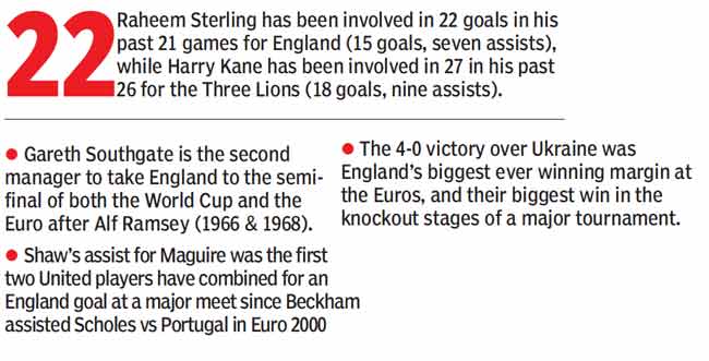 ROME: England return home from the Eternal City standing just two games away from immortality. A lethal double from back-to-form Harry Kane and two thumping set-piece headers from Harry Maguire and Jordan Henderson sent Gareth Southgate's men into the Euro semifinals and a meeting with Denmark at Wembley on Wednesday.