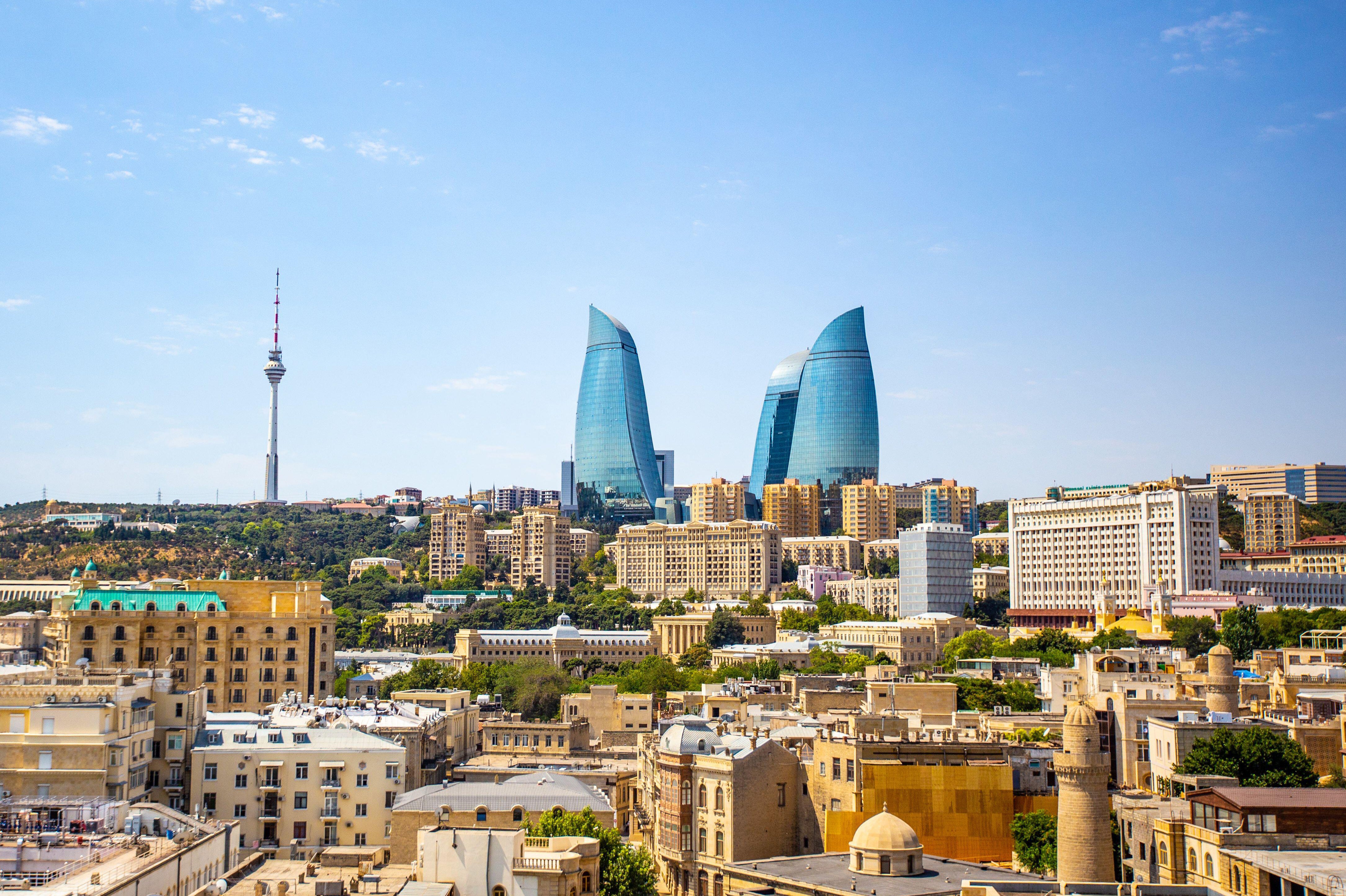 Azerbaijan is nicknamed ‘the Land of Fire’, and the three gleaming glass Flame Towers loom above the city, casting much of the centre into shade.