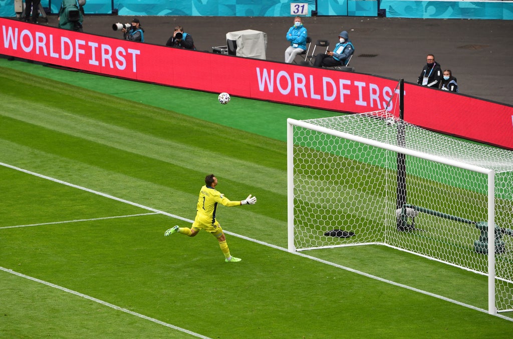For one, at 54 yards, there’s never been a goal in the Euros from as far out. That alone makes it distinctive, and puts it up there with the competition’s true dynasty of strikes. You immediately know the ones we’re talking about.