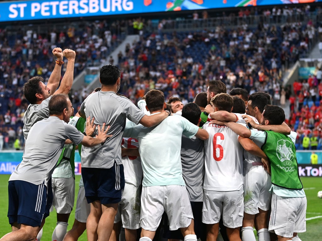 They gallantly managed to force the match to extra time, in which Moreno failed to convert a lovely Alba cross from the left. Another deflected shot wrong-footed Sommer, but he was relieved to see Dani Olmo’s effort that hit Moreno spin wide.