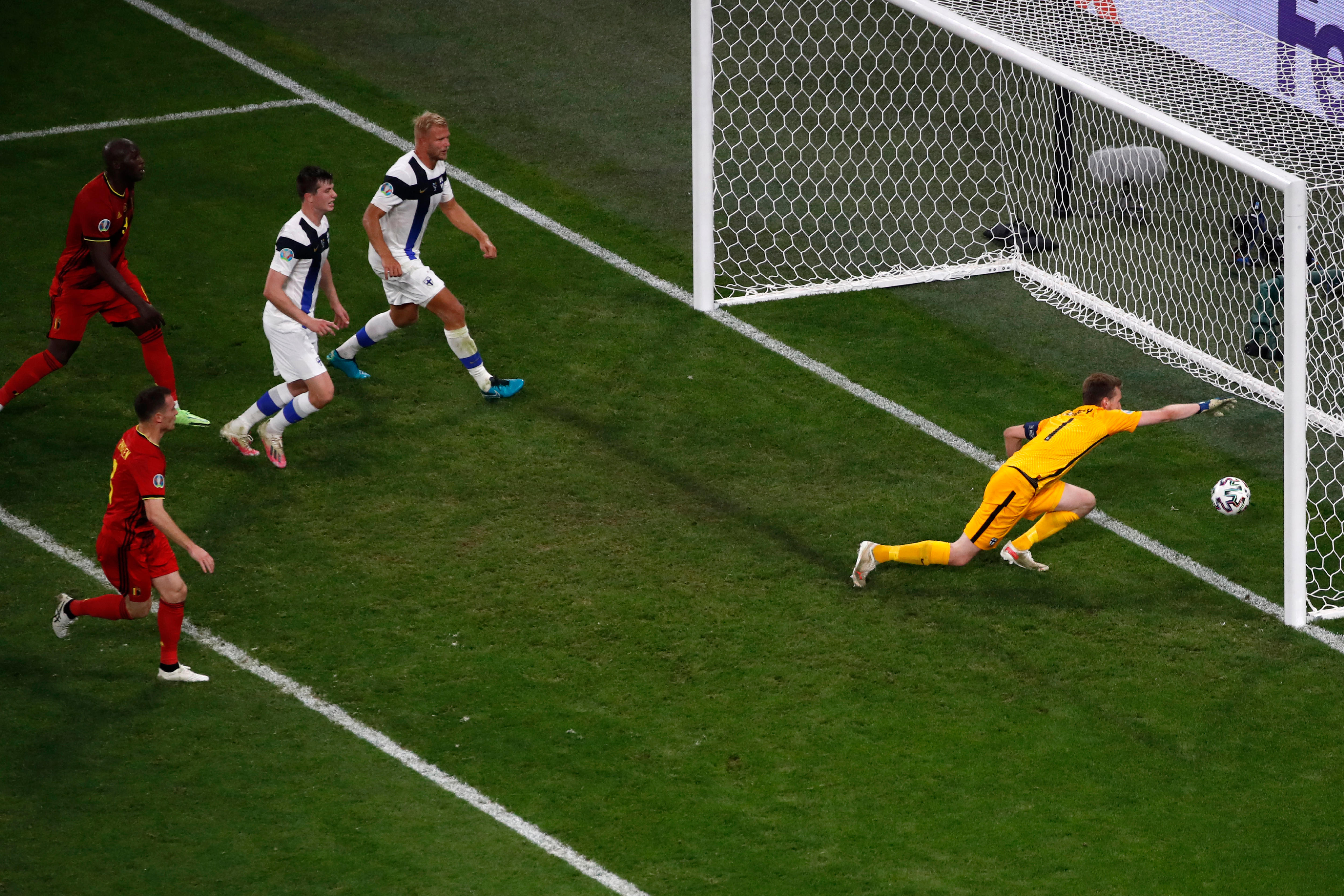 Finland fell behind in the 74th minute when a header from Thomas Vermaelen hit the post, the ball rebounded onto the hand of Finland goalkeeper Lukas Hradecky and went over the line.