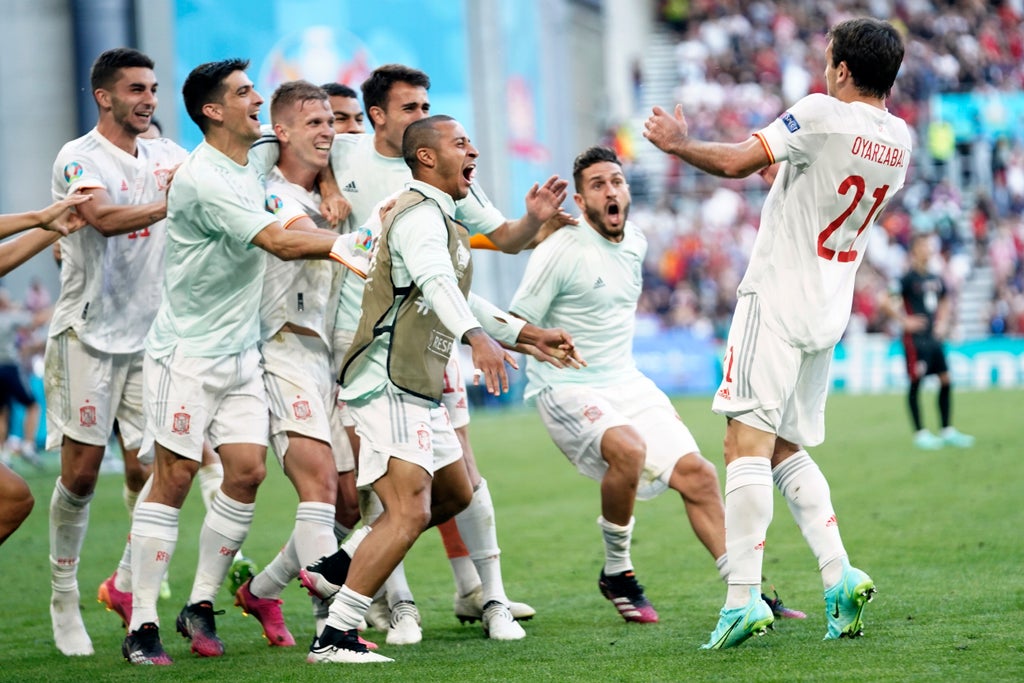Moments later, Spain had a two-goal lead again as substitute Oyarzabal raced into the box to meet a fine ball from Dani Olmo and tuck home.