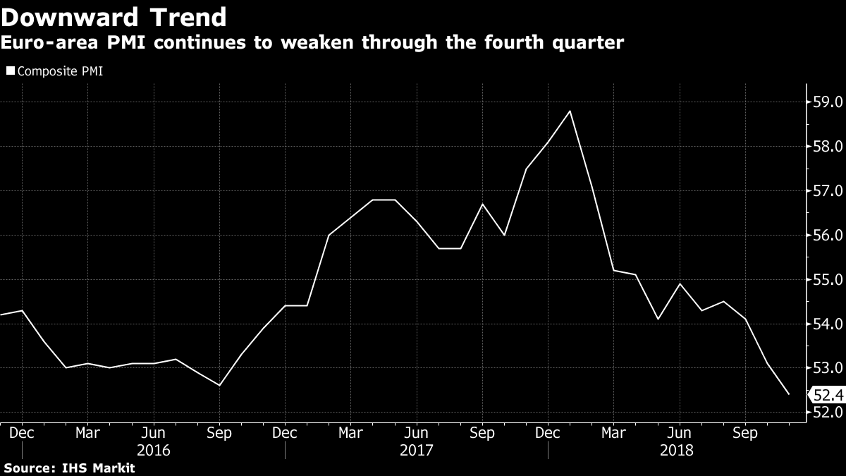 The figures will be another disappointment for European Central Bank policy makers, who are counting on a rebound this quarter as they prepare to start unwinding stimulus. They’ve acknowledged “fragilities’’ in the economy, but are holding to the line that the broad-based expansion remains intact.