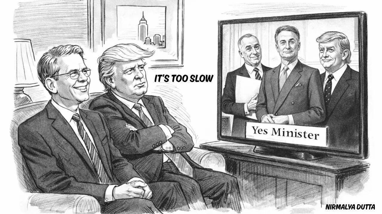 It was the sort of flawed logic that would have gladdened Sir Arnold Robinson’s heart, the former head of the British Civil Service in the Yes Minister universe before Sir Humphrey Appleby inherited that mantle. Trump, after all, is a television creature himself, but from a very different genre altogether — not the dry, procedural satire of Yes Minister, but the brash, elimination-based reality show.