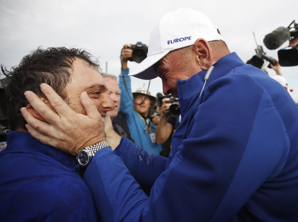 Europe were effectively assured of victory when he teed off as the Italian, Henrik Stenson and Sergio Garcia were all dormie and guaranteed at least half a point from their matches - with Europe needing just one more.