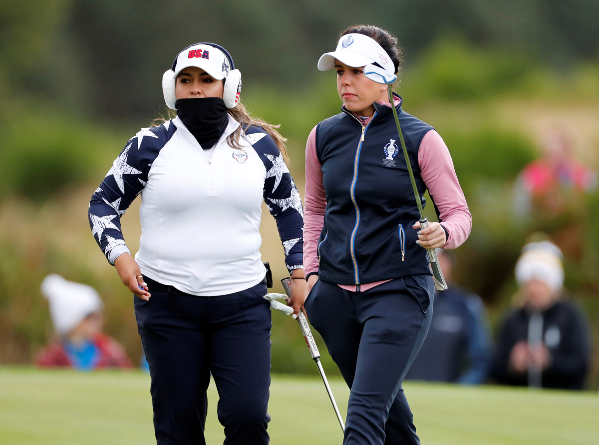 Three of the four fourball matches were decided on the final hole while Americans Danielle Kang and Lizette Salas beat Carlota Ciganda and Azahara Munoz with a birdie on the 17th to go two up.